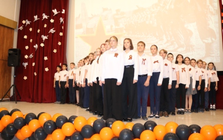 Затем атмосфера резко изменилась. Прозвучала песня «Священная война», символ мужества и непоколебимой воли советского народа. Юные певцы исполнили ее с удивительной серьезностью и проникновенностью, передавая всю глубину и трагизм этой легендарной композиции. В их голосах слышалась боль, гордость и память о тех, кто отдал свои жизни за мирное небо над головой.